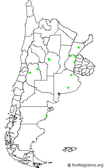 La PazMallínParque Nacional El PalmarColonia Carlos PellegriniEstancia La Paz, Mocoretá, Departamento Monte CaserosBenito JuárezÁrea Natural Protegida Don SebastiánCercanías de CharacatoPlomerSan CarlosÁrea Natural Protegida Punta TomboNote that in the map, no fully geographic distributions are provided. Only species detected and then marked by the members are. Therefore it's important that all of us may contribute to get it constantly updated.
