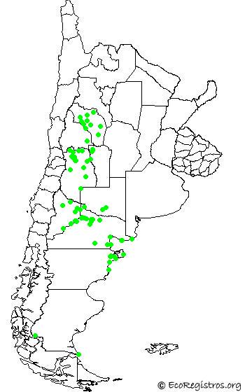 PuelchesPuerto MadrynReserva Natural Punta LomaÁrea Natural Protegida Punta TomboÁrea Natural Protegida Península ValdésÁrea Natural Protegida El DoradilloRuta 237 - Norte de Piedra del ÁguilaParque Nacional Sierra de las QuijadasPotrerillosLas GrutasBahía CreekGeneral RocaReserva Natural VillavicencioVilla El ChocónParque Nacional TalampayaReserva de Biósfera ÑacuñánLavalleVilla ReginaLujan de CuyoLa PazChimpayChichinalesRuta Provincial 66, aproximadamente 35 km S Villa Regina, Puesto de los MansillaRuta Provincial 66, cerca de Cerro Mesa, aproximadamente 68 km S Villa ReginaAllenRuta 152, km 223Las HerasSierra GrandeBahía CrackerCiudad de Neuquén, reserva Universidad Nacional del ComahueFamatinaEmbalse El CarrizalSan CarlosGolfo NuevoRawsonMedanos de CauceteReserva Natural y Cultural Bosques TeltecaSalina La AntiguaPaeque Provincial GuasamayoLa HigueritaEmbalse El ChocónYacimiento Coiron AmargoMeseta de SomuncuraRuta 68 - Entre Represa El Chocón y Ruta 74Picún LeufúParque Nacional Los GlaciaresAñeloCatrielPagancilloGeneral AlvearLos ColoradosVilla 7 de Marzo (la Baliza)San PedroPlayas DoradasBalsa las PerlasEmbalse PotrerillosVichigastaReserva Provincial Cabo VirgenesSanta RosaAgrelo, Lujan de CuyoSalinas de BustosRuta Nacional 40 2584Faro BelenAzud Nº 2, Rio DesaguaderoYacimiento El TrapialParque provincial quebracho de la leguaUgartecheReserva Provincial Cerro NegroAguada del ChañarLagunita temporal de la canteraNote that in the map, no fully geographic distributions are provided. Only species detected and then marked by the members are. Therefore it's important that all of us may contribute to get it constantly updated.