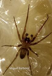 Description: A medium-sized spider with dark brown coloration, the cephalic area is black.Sexual Dimorphism: Males tend to have a lighter coloration than females, with longer legs and a less swollen abdomen.Environment: It inhabits tree hollows, under bark, beneath fallen logs, and rocks resting on the ground in forested environments. It is also found in city gardens, where it is often an abundant species.Geographical Distribution: Common in the province of Buenos Aires. This species was introduced to the southern United States.Behavior: It is sedentary, constructing an irregular web beneath objects resting on the ground or in tree cavities. During the breeding season, males wander at night in search of females.Diet: They feed on arthropods that get trapped in their web.Author of this description: Nicolás Olejnik