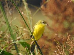 Description: A doradito measuring 10–12 cm, with bright olive tones dorsally and intense yellow ventrally. The male presents an erect semicrest that can be raised during display; the female shows a dull or plain olive crown. Uniform green-olive back; brownish-gray wings with discreet pale edging; weakly marked facial mask. Lower belly lemon-yellow. Bill dark and slender. The only typical high-elevation doradito in Argentina (NW and central sierras). In lowlands it coexists with other doraditos: it is distinguished by its purer olive-green coloration and its highly diagnostic voice. More olive and uniform than the Common Doradito (P. flaviventris) and the Limon (P. citreola), which show brownish tones on the head and back.